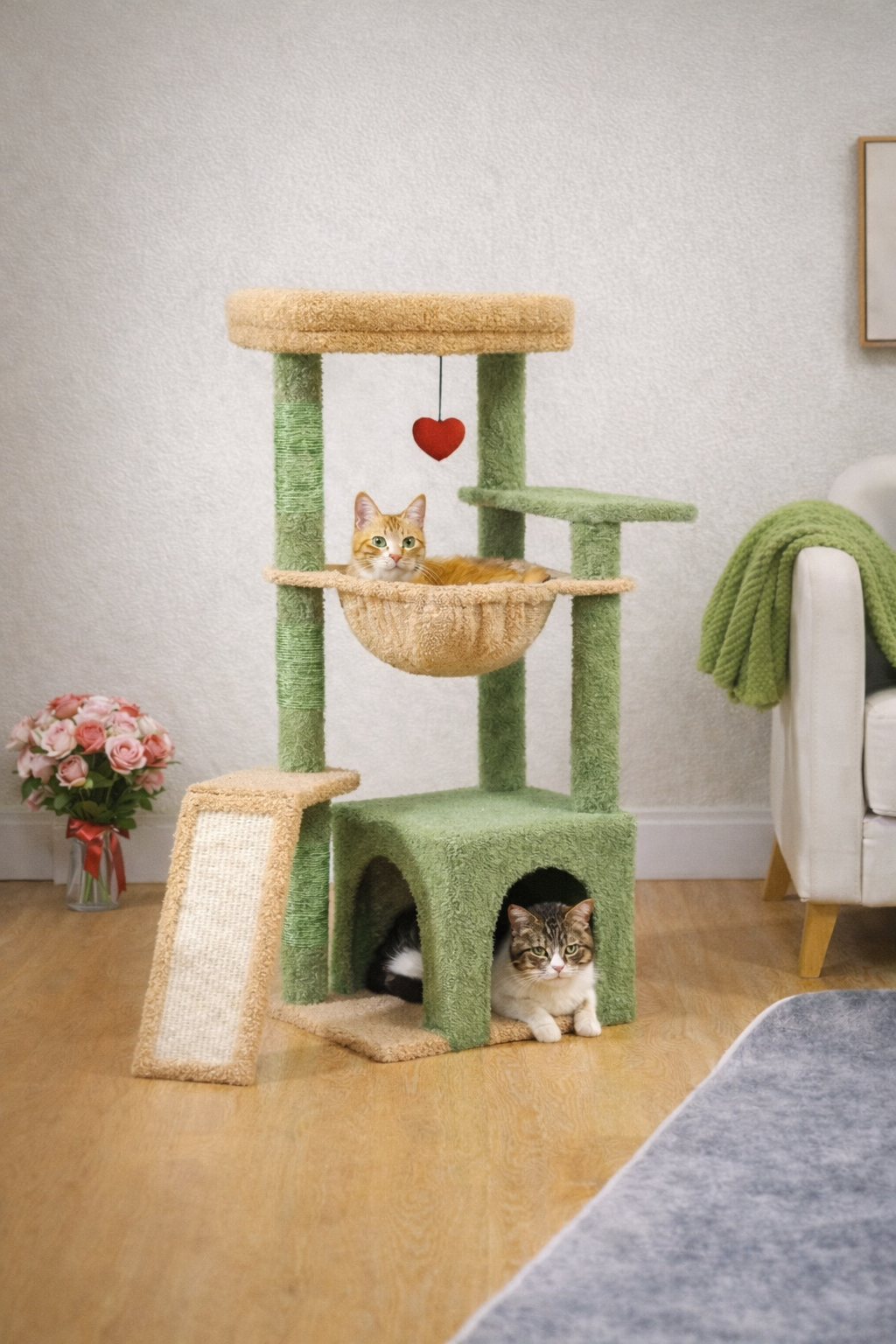Un albero tiragraffi compatto ma completo che trasforma ogni angolo della tua casa in un parco giochi premium per il tuo felino.
