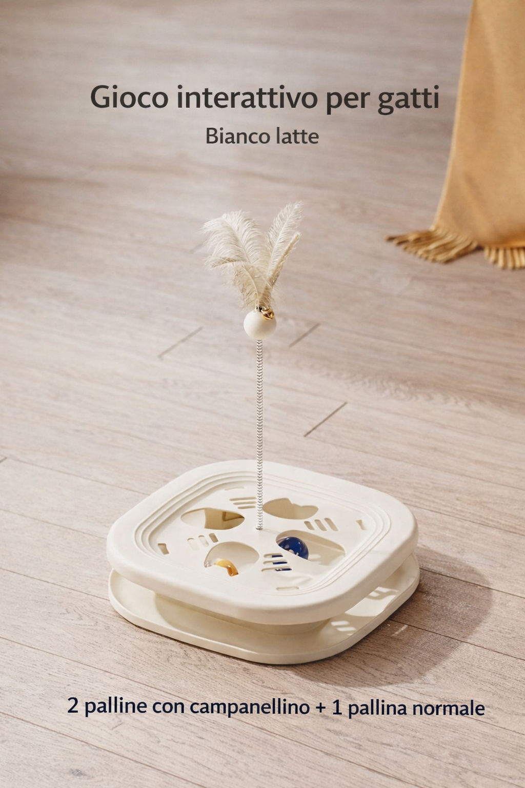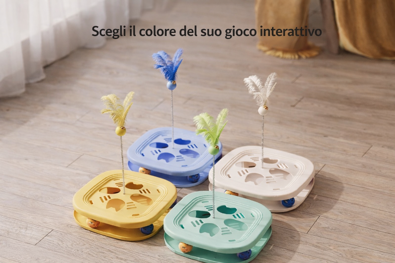 Le piume e le palline offrono al gatto un’attività coinvolgente anche quando non puoi giocare con lui, aiutandolo a rimanere attivo e sereno.