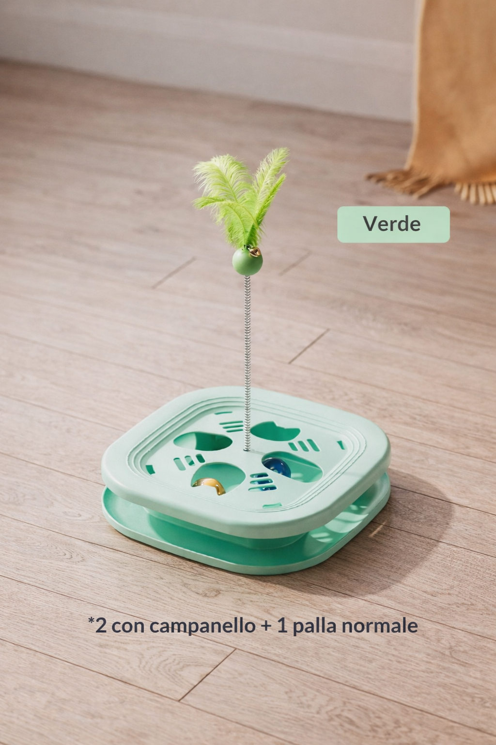 Le piume oscillanti e le palline interne catturano subito l’attenzione del gatto, riducono la noia e lo aiutano a sfogare energia in modo positivo — ideale per gatti indoor e gattini vivaci.